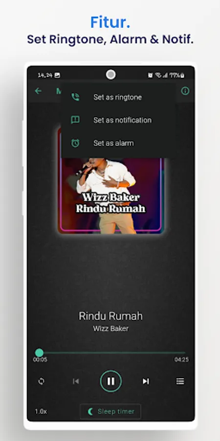 Personalize your Android device with sensational music from Wizz Baker using the set ringtone/alarm feature. Choose your favorite song as a unique ringtone or an inspiring alarm to start your day with its melodious sound.