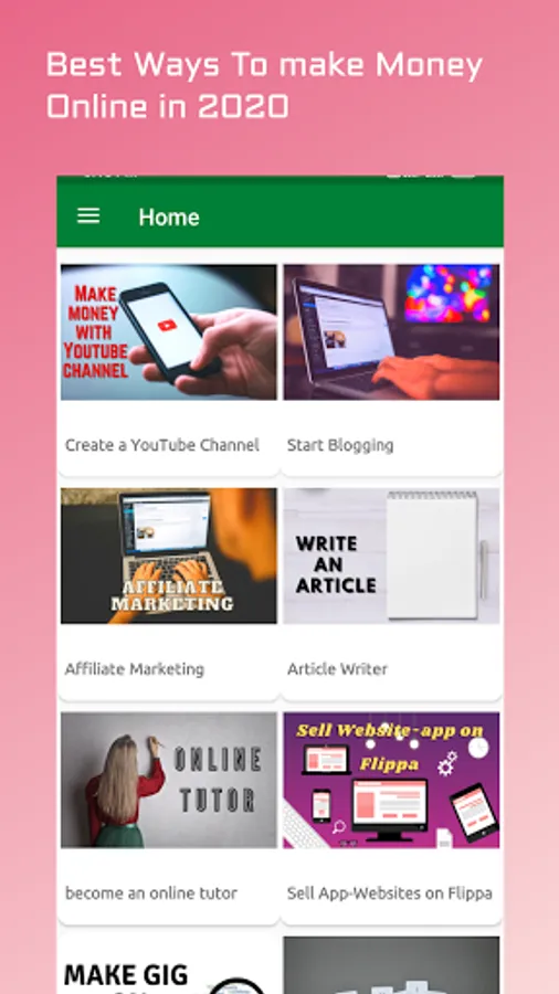 The App has complete list of online money making websites and online business making opportunities in 2020.