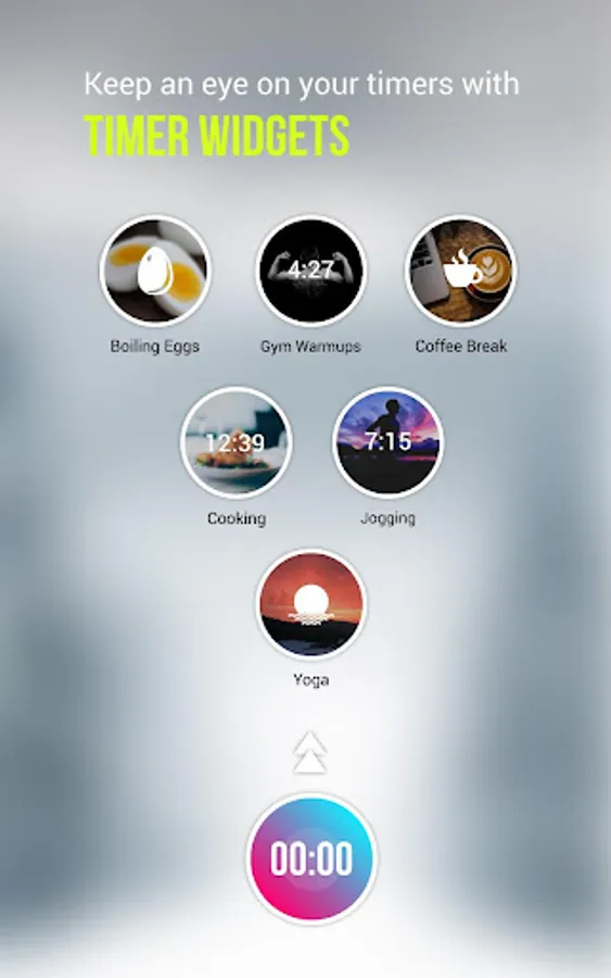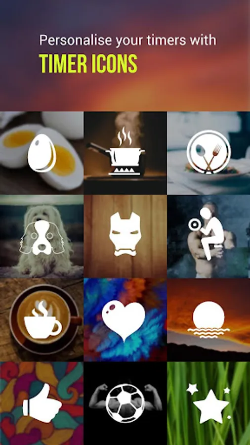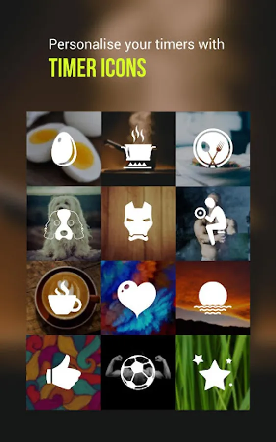Our designers have created classy icons for your timer tasks, along with the backgrounds for the timer. This will help you identify your timers much better than just names and also make it more friendly and fun than just counting down numbers.