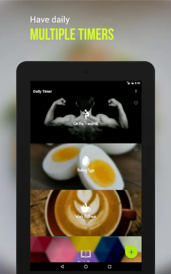 Daily timer not only provides users an option to create multiple timers, but they can also run them simultaneously. You can not only see all your timers in one place in a beautifully designed list, you can also navigate between timers with a simple swipe gesture.