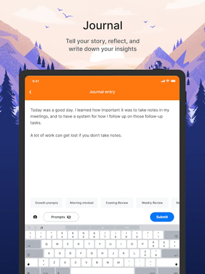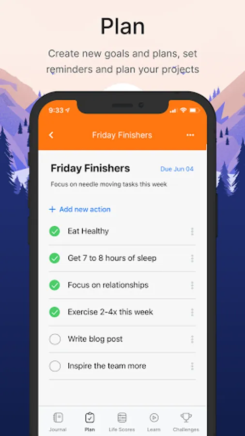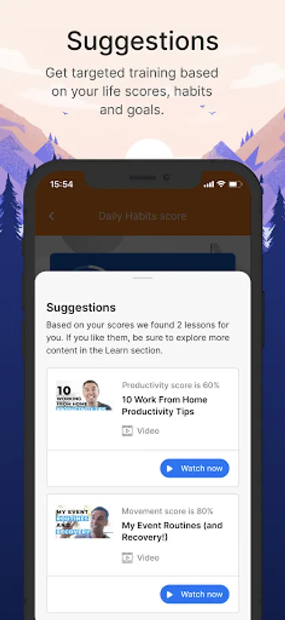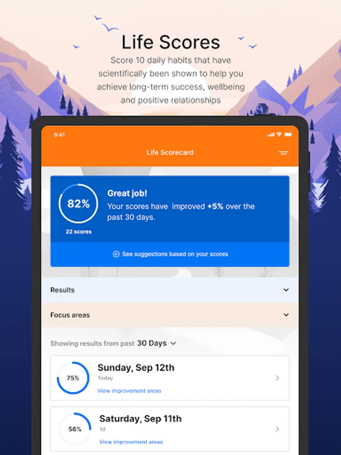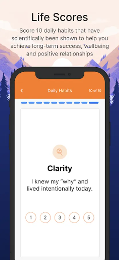 - Score & improve your mindset, habits & mood through our research-backed daily, weekly, & monthly self-assessments.