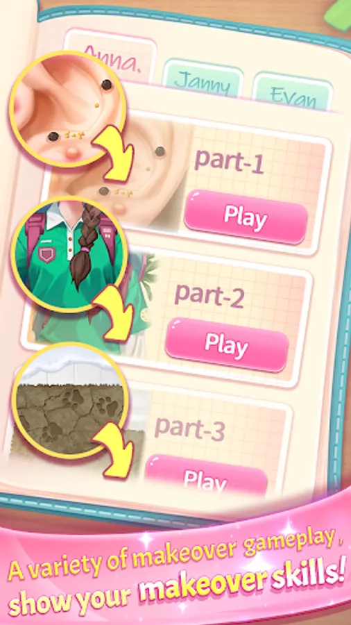 As a customer of your salon urgently needs a makeover. Your task is to help them solve problems such as acne, uneven skin tone, facial dullness, and the variety of makeup products available. Use cosmetics to create trendy makeup, creases, paint, and polish to perfect your clients' nails. In addition, there are many injured patients with various foot and nail problems, such as painful infections, fractures, wounds, bacteria, and various scratches that require emergency surgery. Don't be afraid, provide them with treatment. Choose from thousands of fashionable clothes, gorgeous nails, eye-catching makeup, and luxurious interior design to give people the makeover they want!