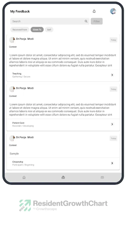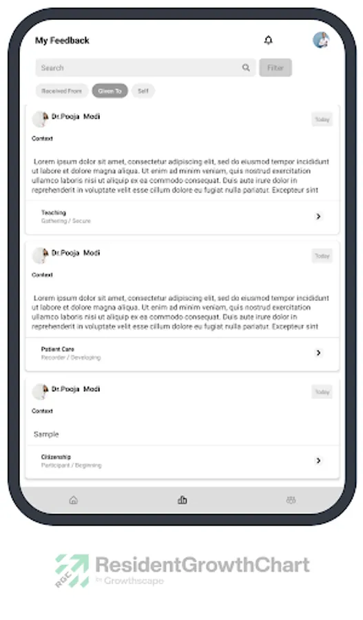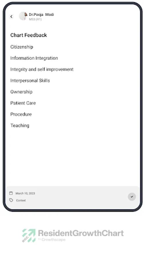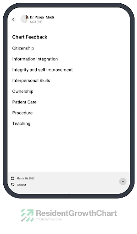 - Competency charts with plot points aggregated by faculty using the RGC App for Residents and program leadership to view.