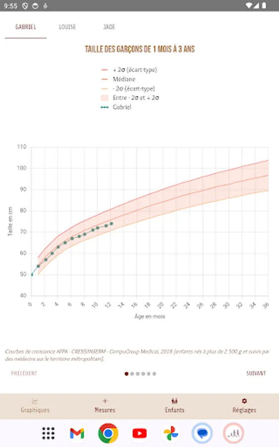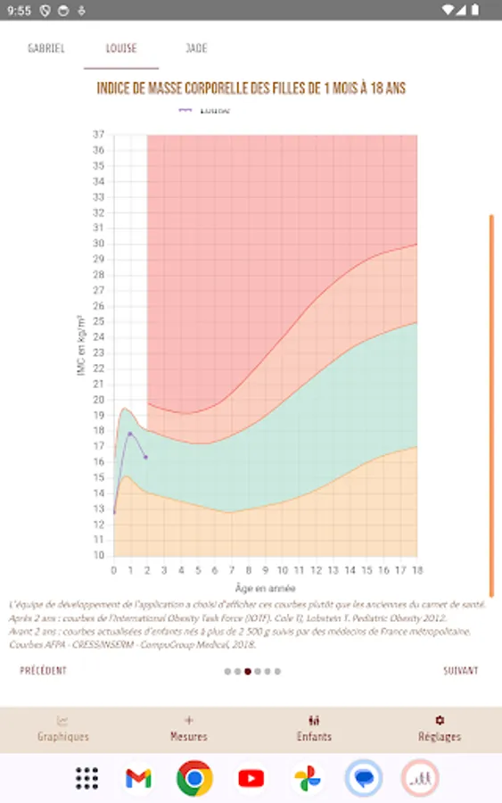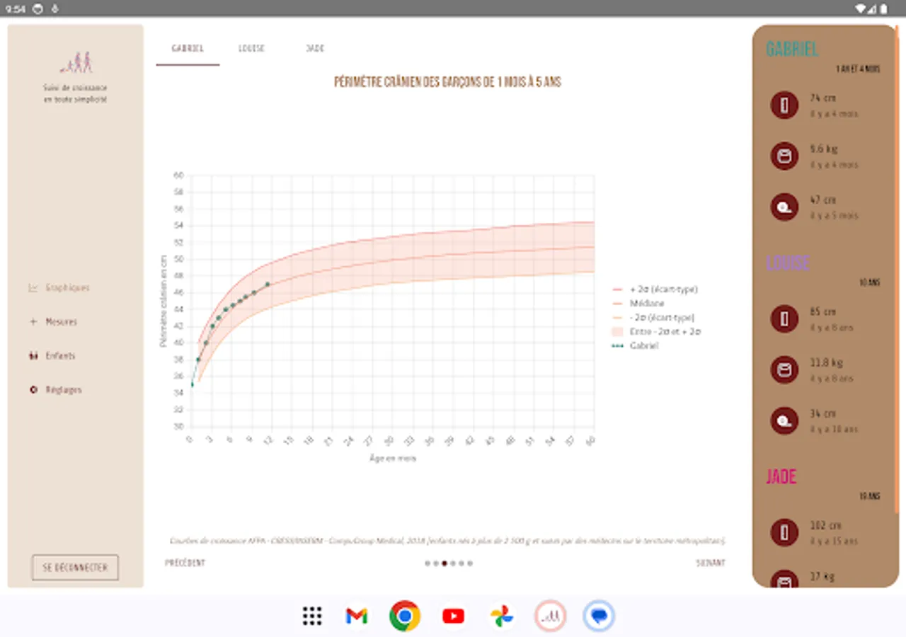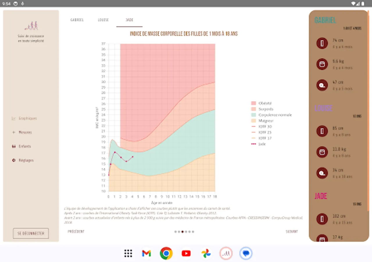 Growth Monitoring is a free application allowing you to easily and quickly monitor the growth of your loved ones. The application is based on the same curves as those present in the health records. The measures followed are: weight, height and head circumference. Growth Monitoring takes care of measuring the BMI to report it on the corresponding curve.