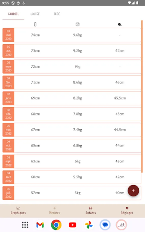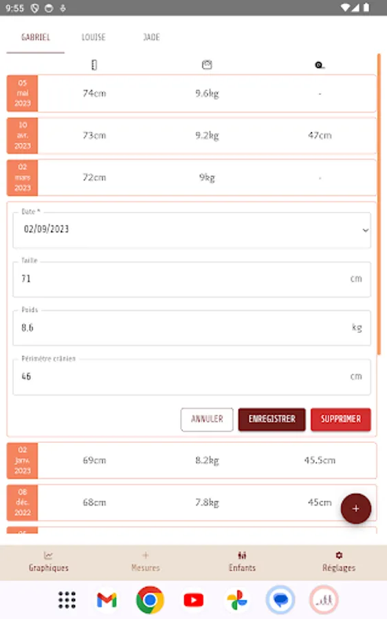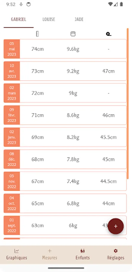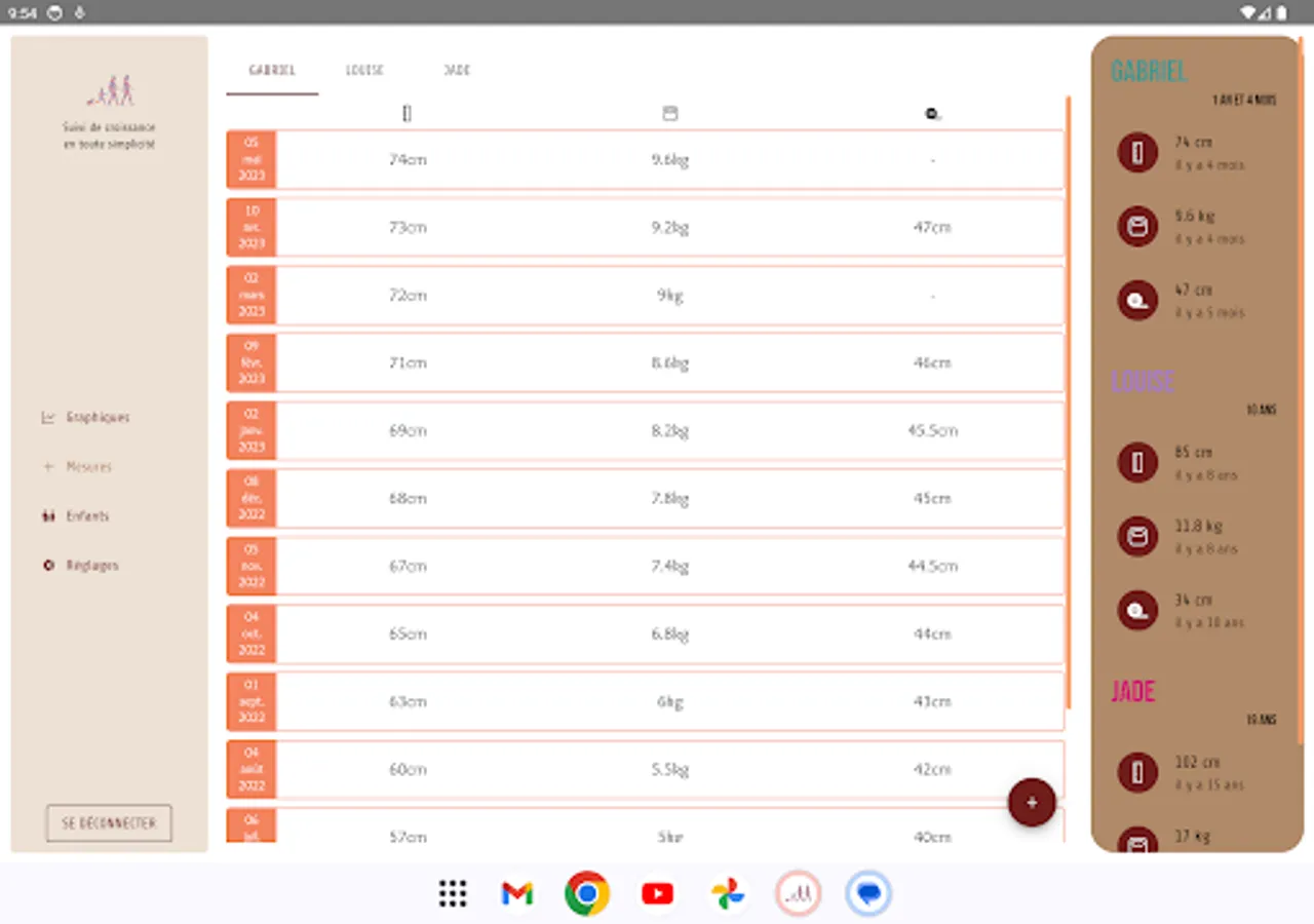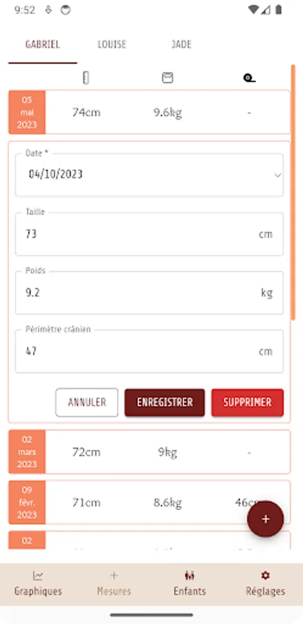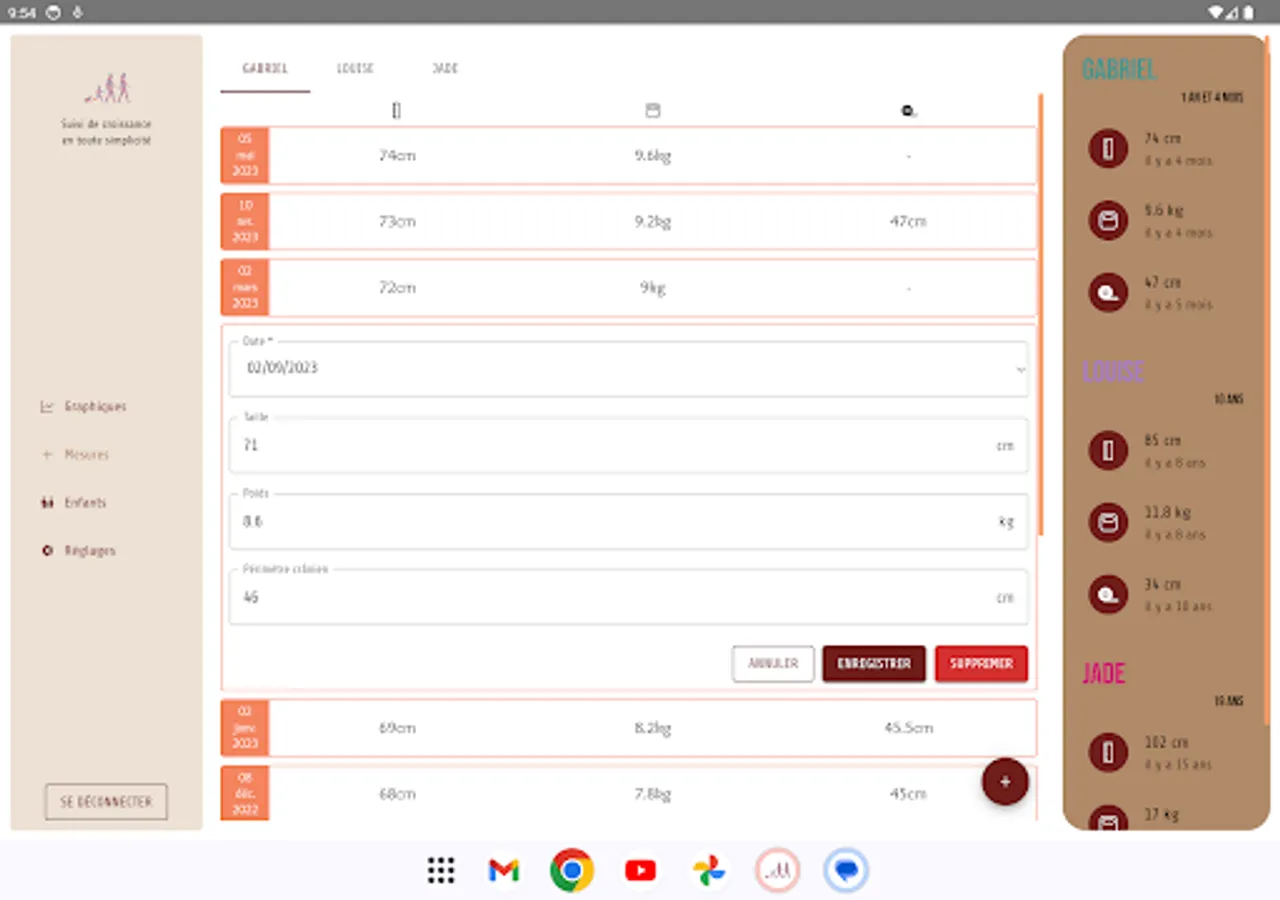- add your children's measurements (date of measurement, weight, height, etc.)