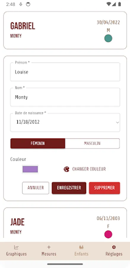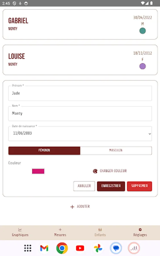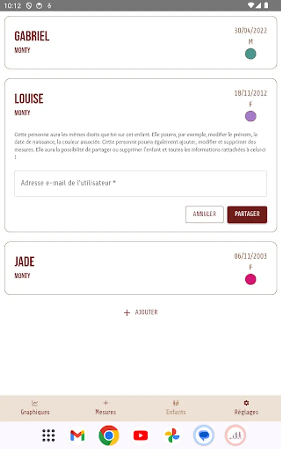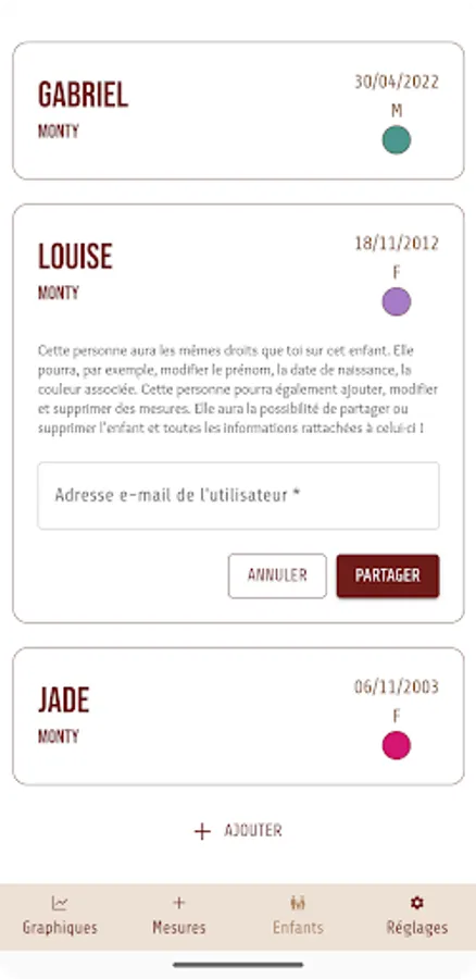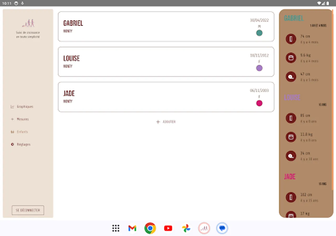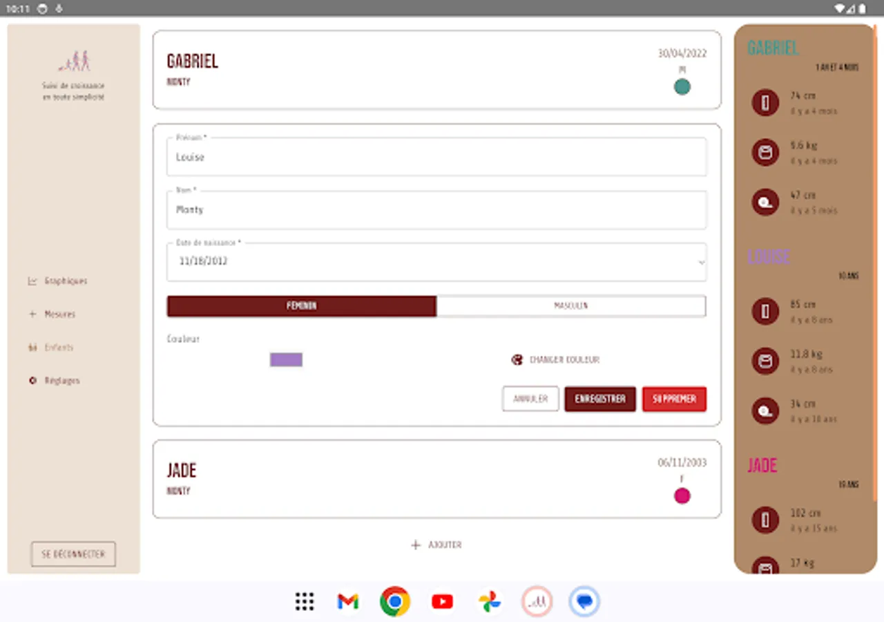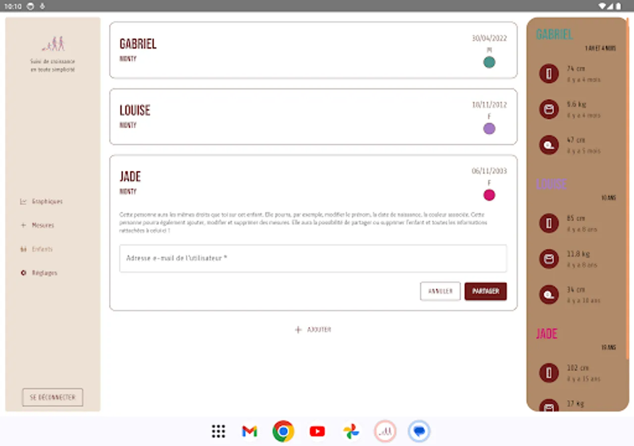 - add your children's measurements (date of measurement, weight, height, etc.)