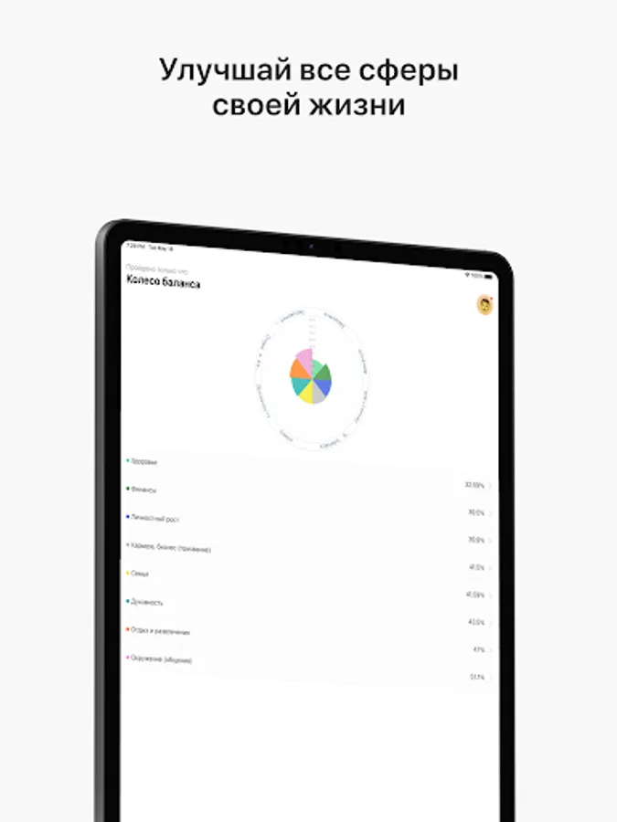 With the help of Growy Me, you can analyze your condition in 8 areas of life. Understand what needs to be improved.
