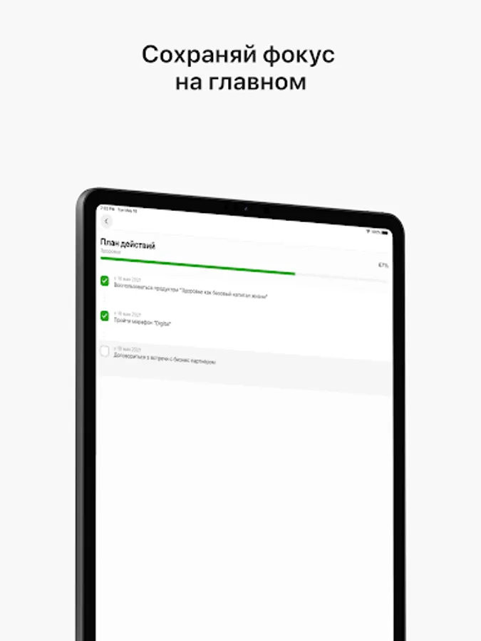 This will allow you to finally start to act, move towards your goal, develop your life easily and interestingly. Smart notifications will help you stay focused on your plan.
