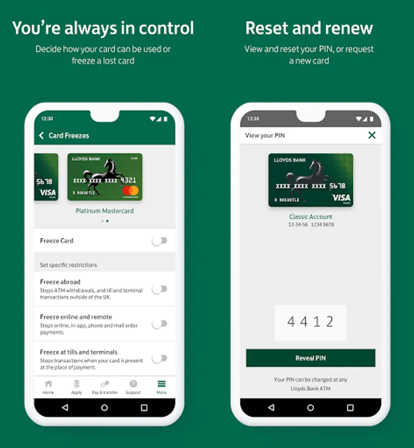 • Easily request a new card, report lost or stolen cards, freeze them and order replacements