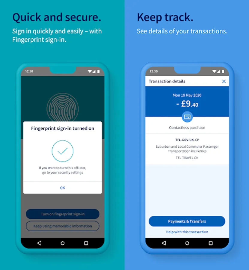- Sign in quickly and securely with your fingerprints or a 3-character combination from your memorable information