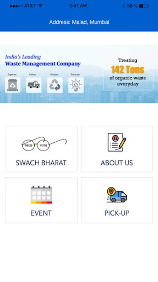 Provide information on Swachh Bharat Mission and give access to individual, societies and hotels to call for pickup of waste. Events happening related to the company waste management are listed in the app.