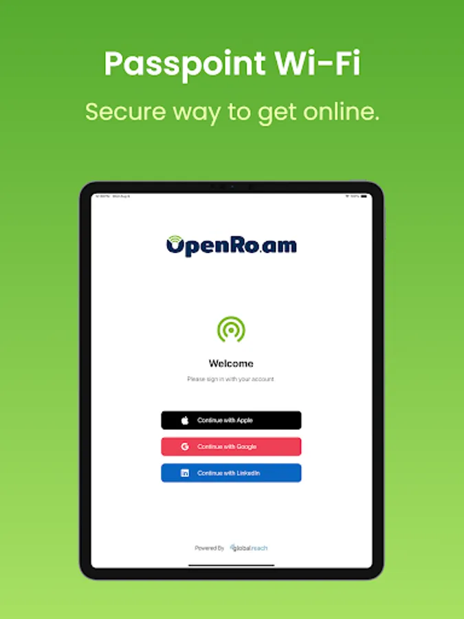 OpenRo.am from GlobalReach Technology configures your device for seamless, secure connection to the WBA OpenRoaming Wi-Fi network.