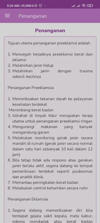 With this early detection feature, pregnant women can find out whether the mother has preeclampsia or not, it is necessary to know as early as possible to prevent death in the mother and fetus. There is education so that mothers who are not detected with preeclampsia know what are the causes, prevention, signs and symptoms and diet of pregnant women from preeclampsia in order to avoid the occurrence of preeclampsia. If pregnant women experience preeclampsia, the mother will know what kind of treatment should be done by pregnant women. This education will increase the knowledge of pregnant women regarding preeclampsia and know more about the actions to be taken during pregnancy.