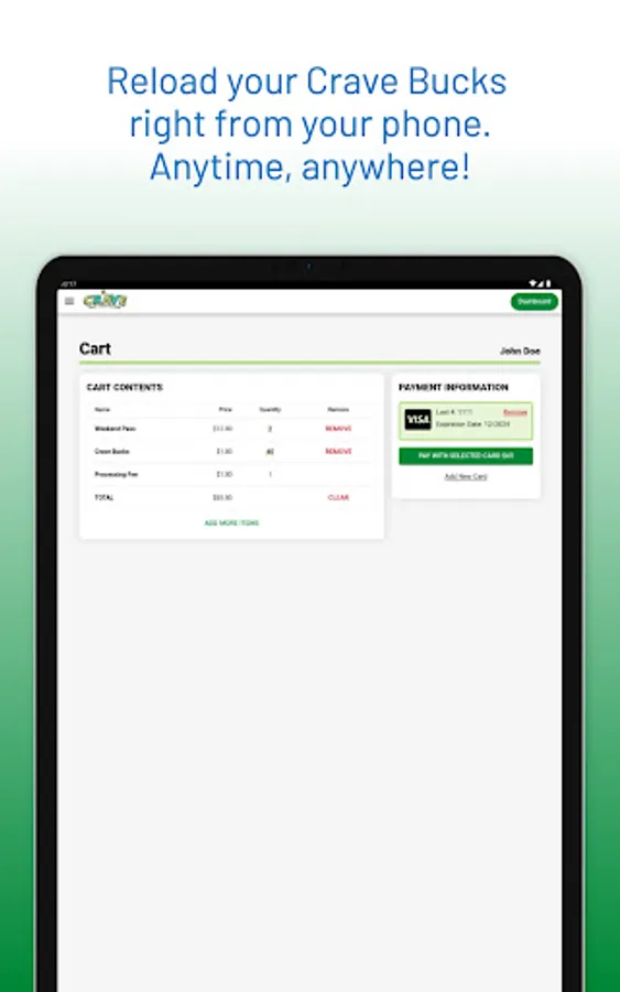 Use this app to manage your Crave account, load more Crave Bucks, and buy food!