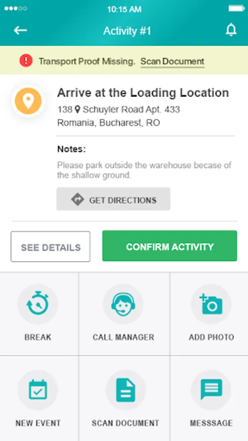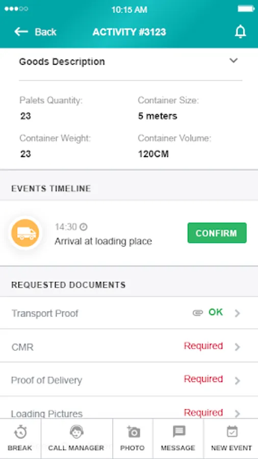 - Confirm transport-related activities (e.g. start and end of loading / unloading activities).