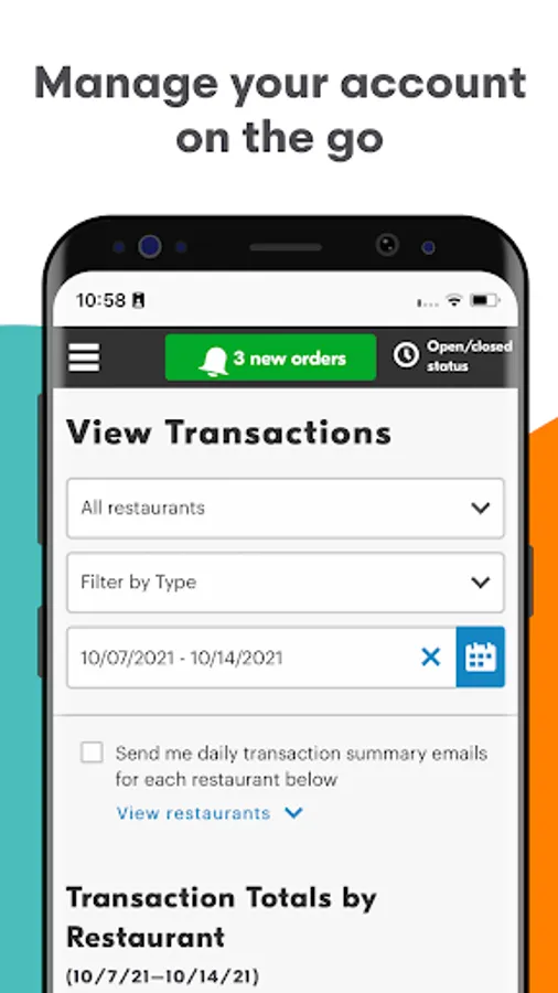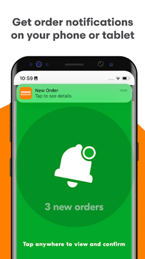 • Never miss an order: Food delivery? Takeout? You name it. Instantly get new order notifications directly to your phone or personal tablet.