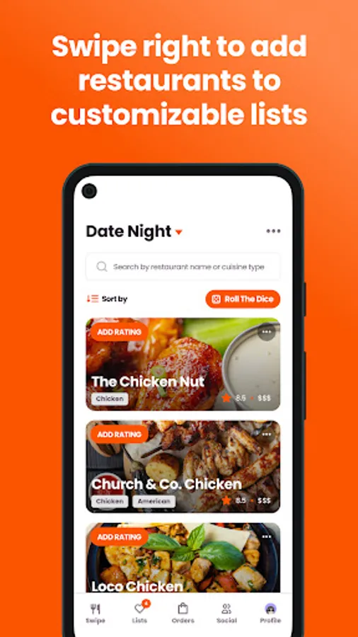• If you’re having trouble deciding where to eat, use the roll-the-dice button and Grublr will randomly select a restaurant for you from your Saved list