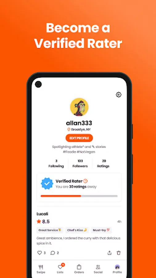 • When you swipe right on a restaurant profile, the profile is added to your selected list