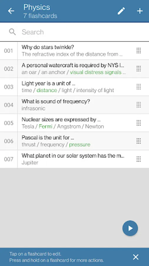 • Shuffle your Flashcards (and Multiple-Choice answers)