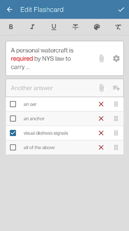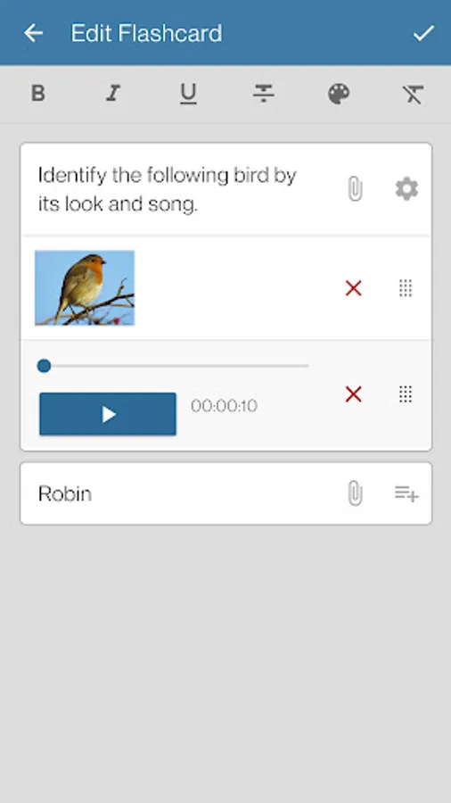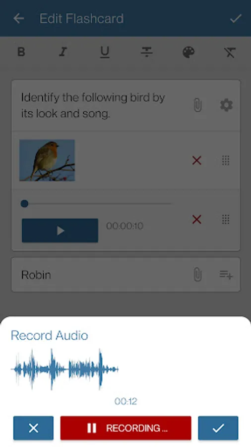 • Format the text of your Flashcards (bold, italic, underline, strikethrough, color)