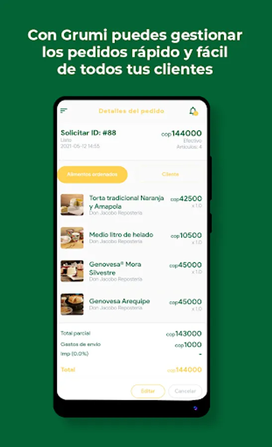 With Grumi you can quickly and easily manage the orders of all your customers.