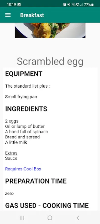 The app covers recipes with step-by-step instructions and the equipment needed.