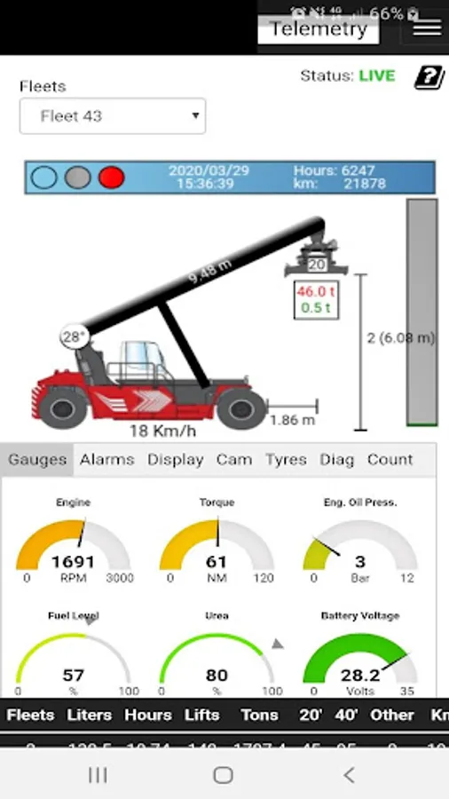 - Documentation of each move of each crane storing all the functional and operative variables live total time of the movement (travel without container attached and