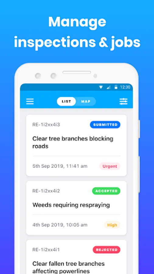 Arm your frontline staff and contractors with an inspection solution they can learn in minutes. The Gruntify field services app presents all information in a clean, easy-to-use user interface and empowers you and other controllers to manage operations from wherever you are.