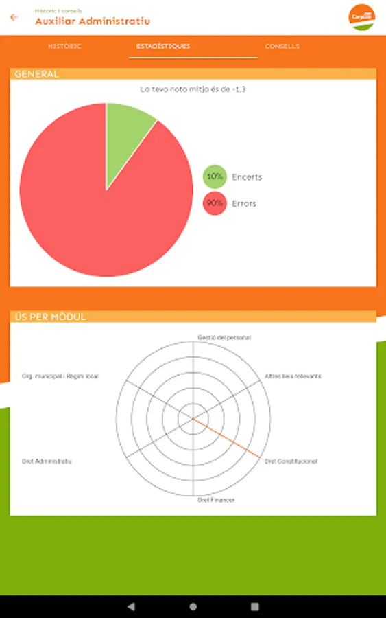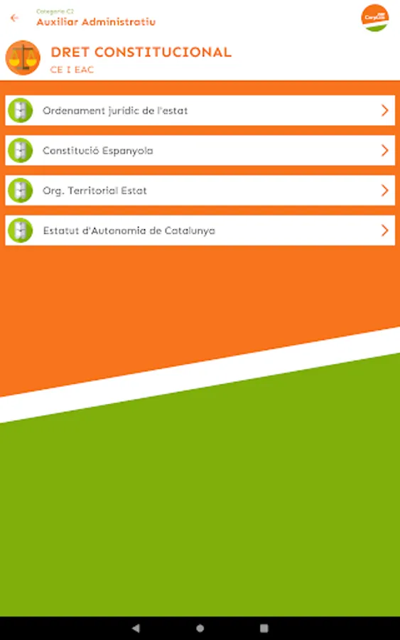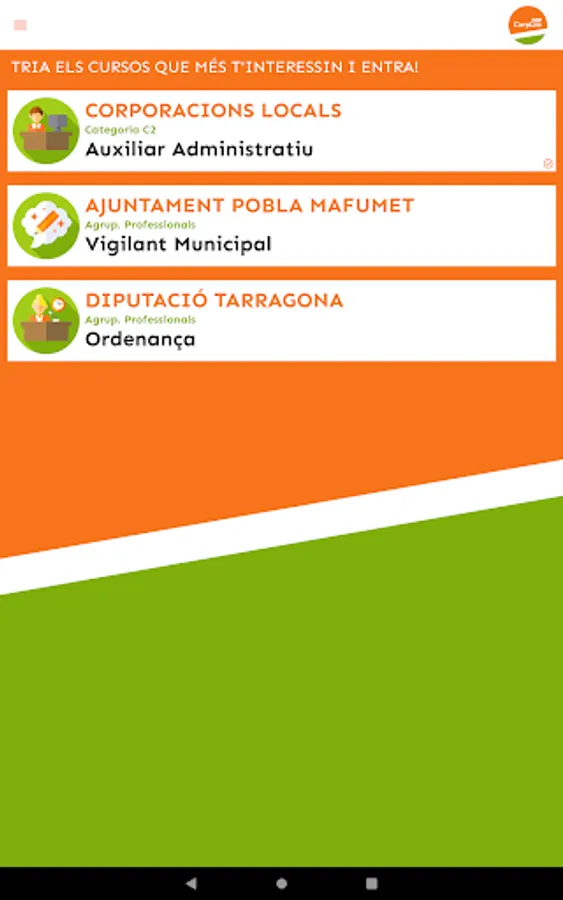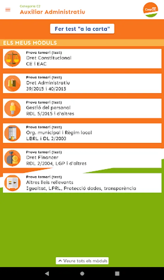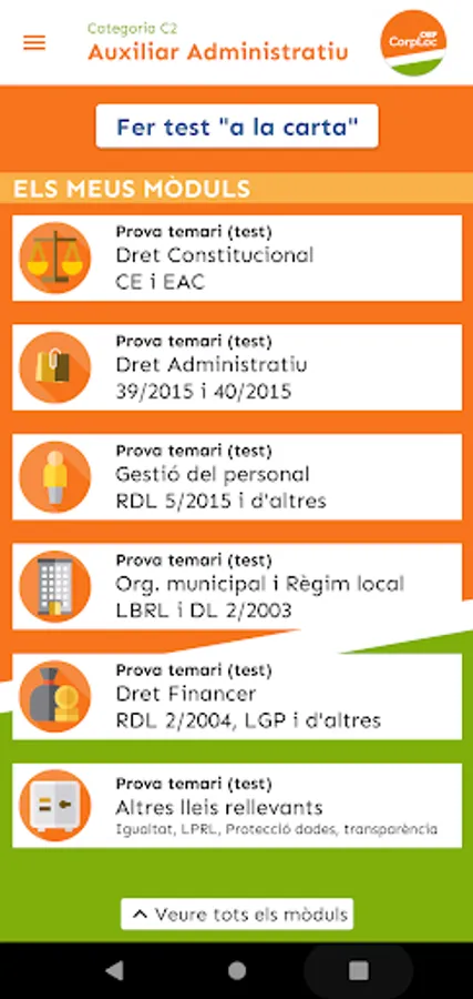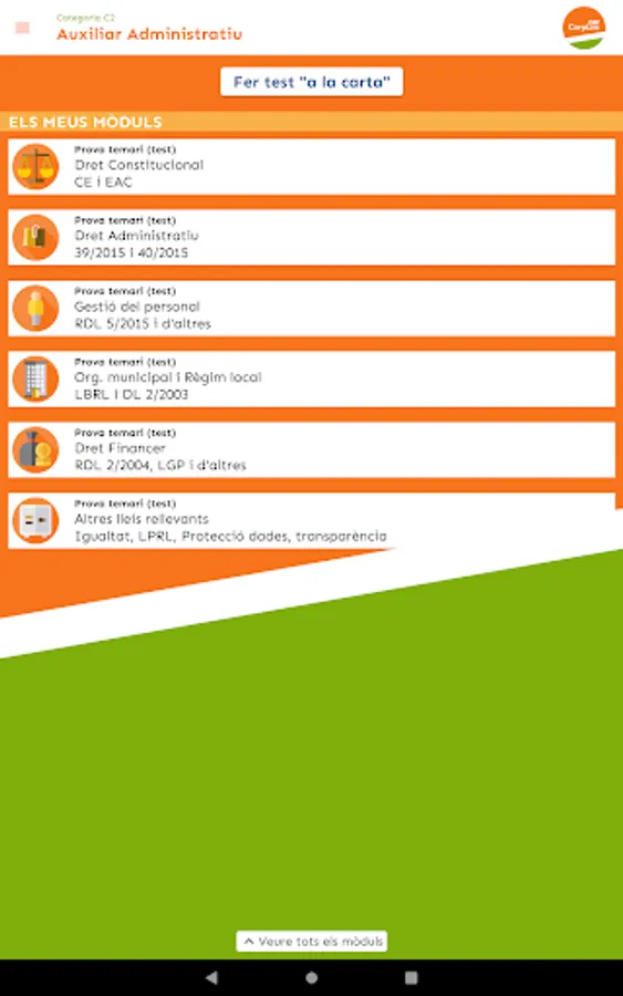 At OEF CorpLoc you will find useful, up-to-date and quality teaching materials that will help you in your preparation for the examinations in Local Corporations of Catalonia (councils, deputations, regional councils, and other related entities). Specifically, we provide you with tests to test yourself, mock exams, exam models from recent years, and personalized study tips based on your test-taking performance.