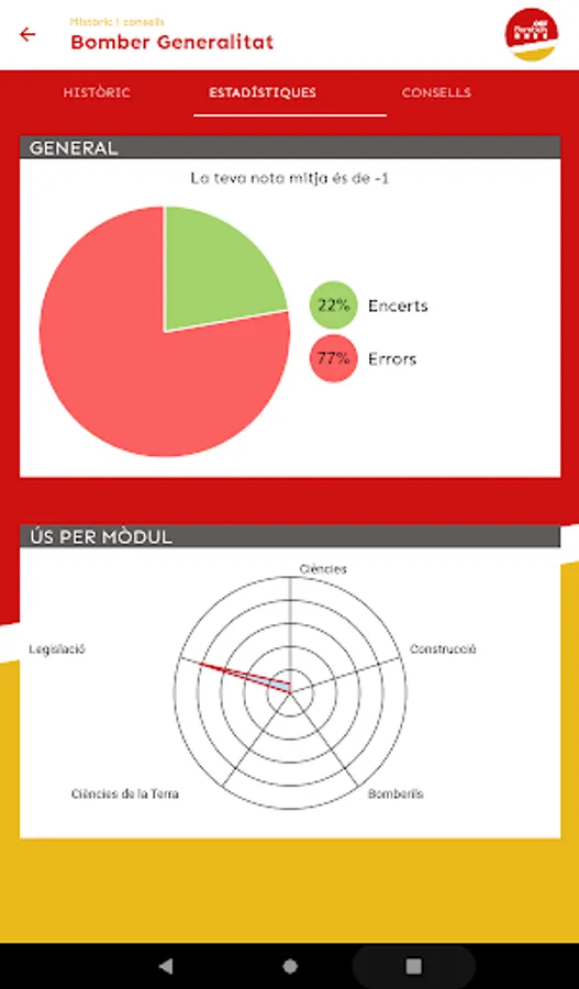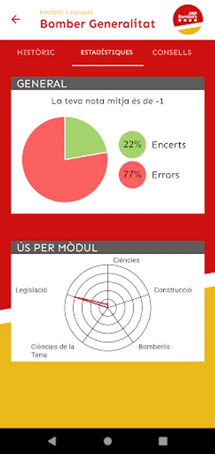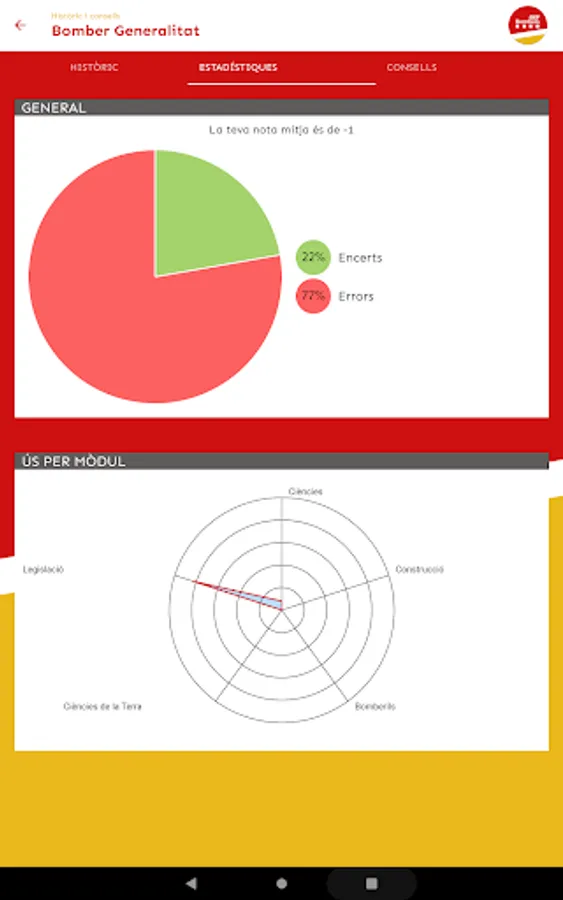 The goal we seek with this application is to put tools at your disposal that facilitate your study task and the assimilation of content. For this reason we have designed a very visual environment, which facilitates retention. In addition, in the "History and advice" section you can see your history (tests taken, grades you have obtained, questions you have failed), detect your areas of improvement and, following the instructions we give you in "Tips" section, be aware of how you should work.