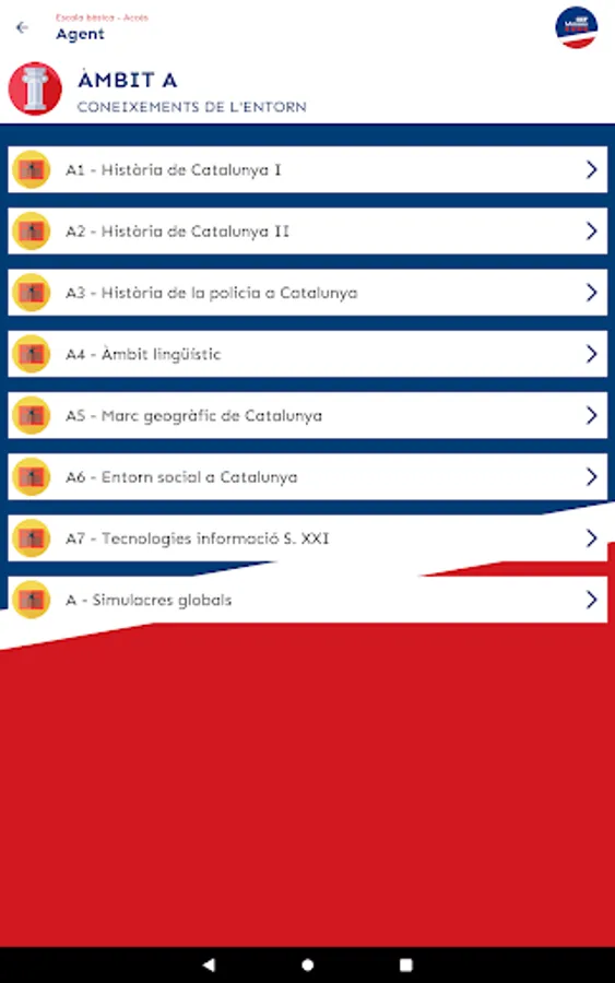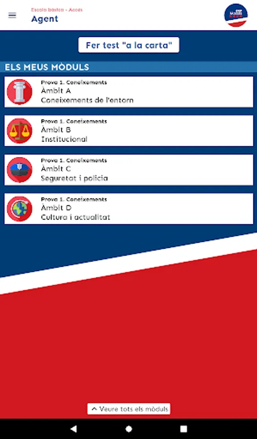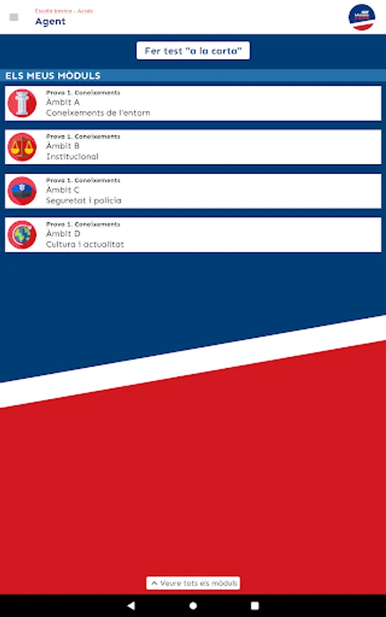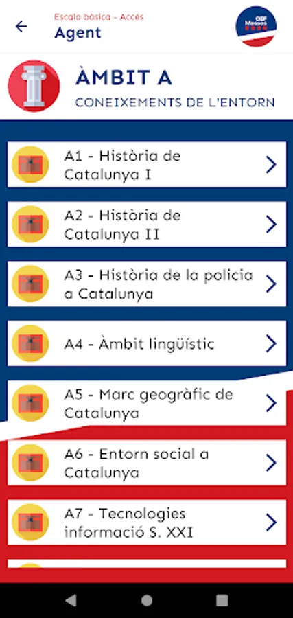 In the Agent opposition (which is what you have to do to access the corps), you will find 6 modules: Area A (knowledge of the environment), Area B (institutional), Area C (security and police), Area D (culture and current affairs), Mock tests of areas A, B, C and D mixed, and Exams from previous years.