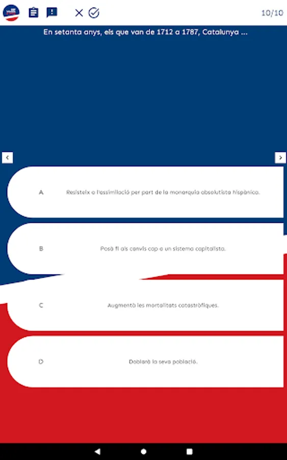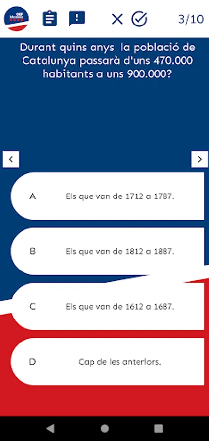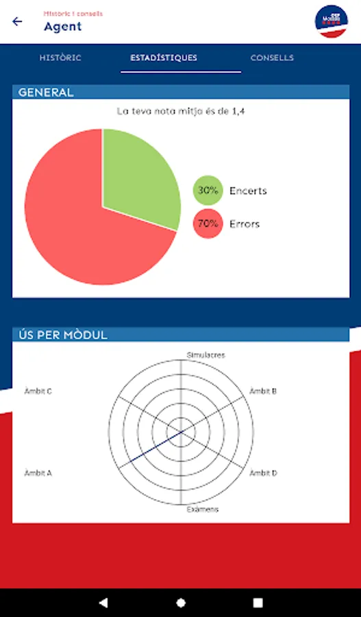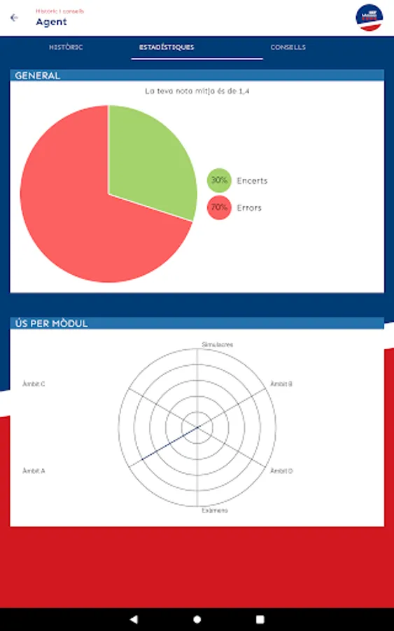 The goal we seek with this application is to put tools at your disposal that facilitate your study task and the assimilation of content. For this reason we have designed a very visual environment, which facilitates retention. In addition, in the "History and advice" section you can see your history (tests taken, grades you have obtained, questions you have failed), detect your areas of improvement and, following the instructions we give you in "Tips" section, be aware of how you should work.
