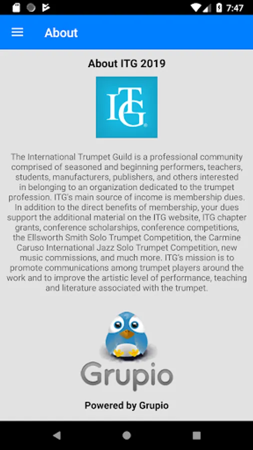 The International Trumpet Guild is a professional community comprised of seasoned and beginning performers, teachers, students, manufacturers, publishers, and others interested in belonging to an organization dedicated to the trumpet profession. ITG's main source of income is membership dues. In addition to the direct benefits of membership, your dues support the additional material on the ITG website, ITG chapter grants, conference scholarships, conference competitions, the Ellsworth Smith Solo Trumpet Competition, the Carmine Caruso International Jazz Solo Trumpet Competition, new music commissions, and much more. ITG’s mission is to promote communications among trumpet players around the work and to improve the artistic level of performance, teaching and literature associated with the trumpet.