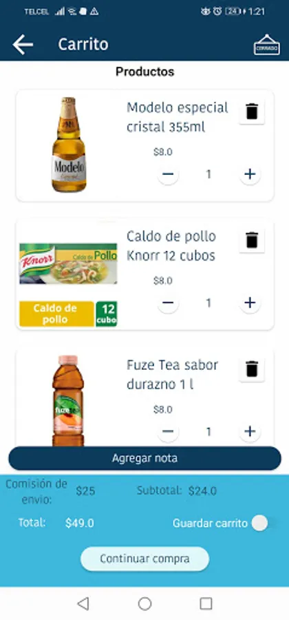 Tienditas is an app so you can buy from corner stores, you can see their product catalog, make a shopping cart, and for a small commission they will bring it to your house, all this less than 1.5km away. Support the local market! : D
