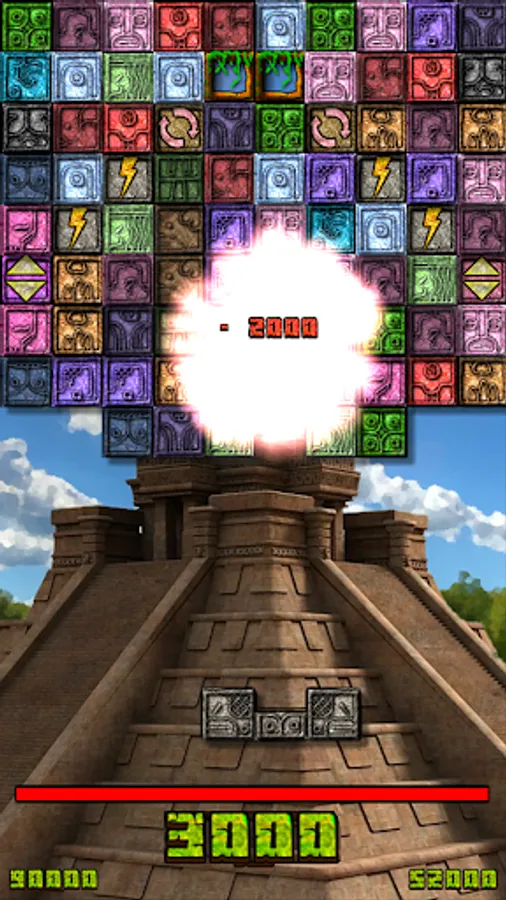 The first step is to collect an block with your transporter, and then drop it in another part of the screen to form lines of three or more rocks. It is not easy. On the contrary. This challenge becomes very difficult as you progress, and you have to prove your ability and mental speed before the pyramid's falling rocks reach you and destroy your transporter. Little by little you will reach more difficult levels, and you'll encounter special items, which will add on time, mixed rocks, create black holes and explosions, and much more.