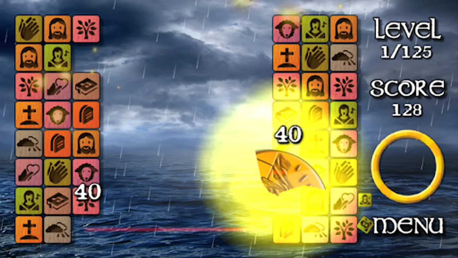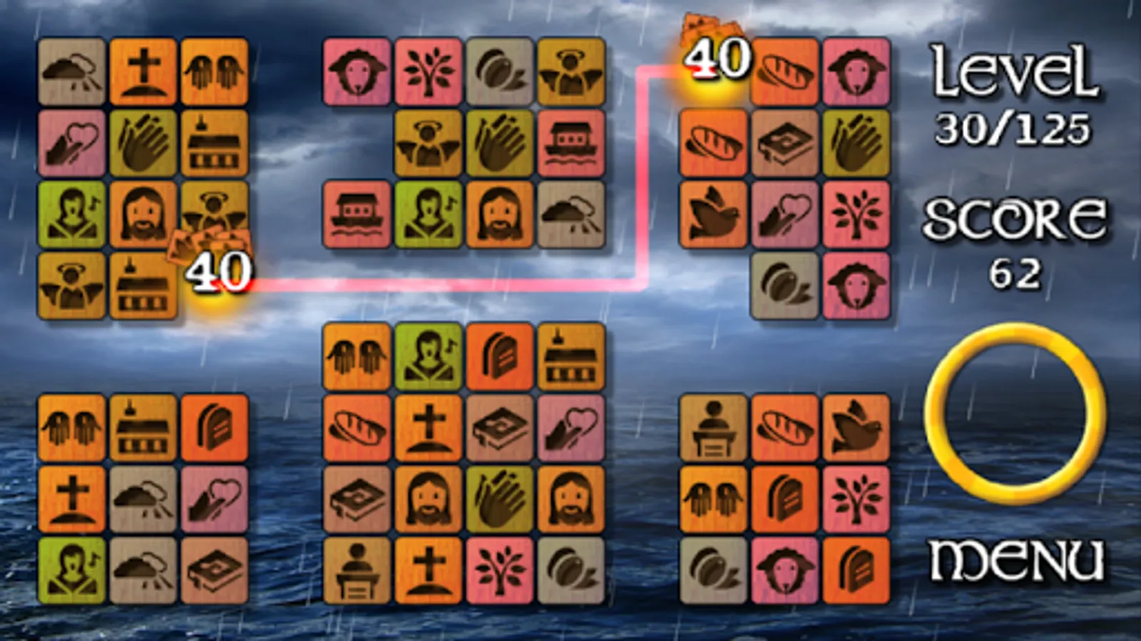 With the game of the Bible you will relax and you will find peace while concentrating. An attractive puzzle in which you must find the Biblical figures that appear in the tiles. Between them you will find figures like Jesus Christ, the Ark of Noah, Olive Trees, or the Holy Spirit...
