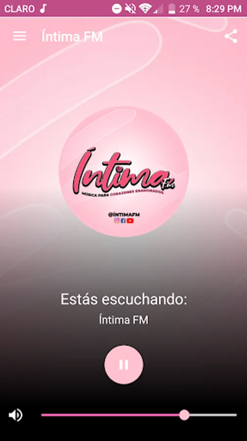 Intimate FM: It is a Romantic Music station that was born with the purpose of pleasing the most demanding tastes, combining the best contemporary adult songs, with positive messages; curious news, reflections that transform lives like Albert's Great Stories, specialized programs and thought of you: Coffee Time, Joining Hearts, Thursday's TBT, Traveling and Remembering; The night is Intimate and the radio station with the highest rating in recent years, El Buzón del Amor, which will continue to be with the consent of God and you the luxury space.