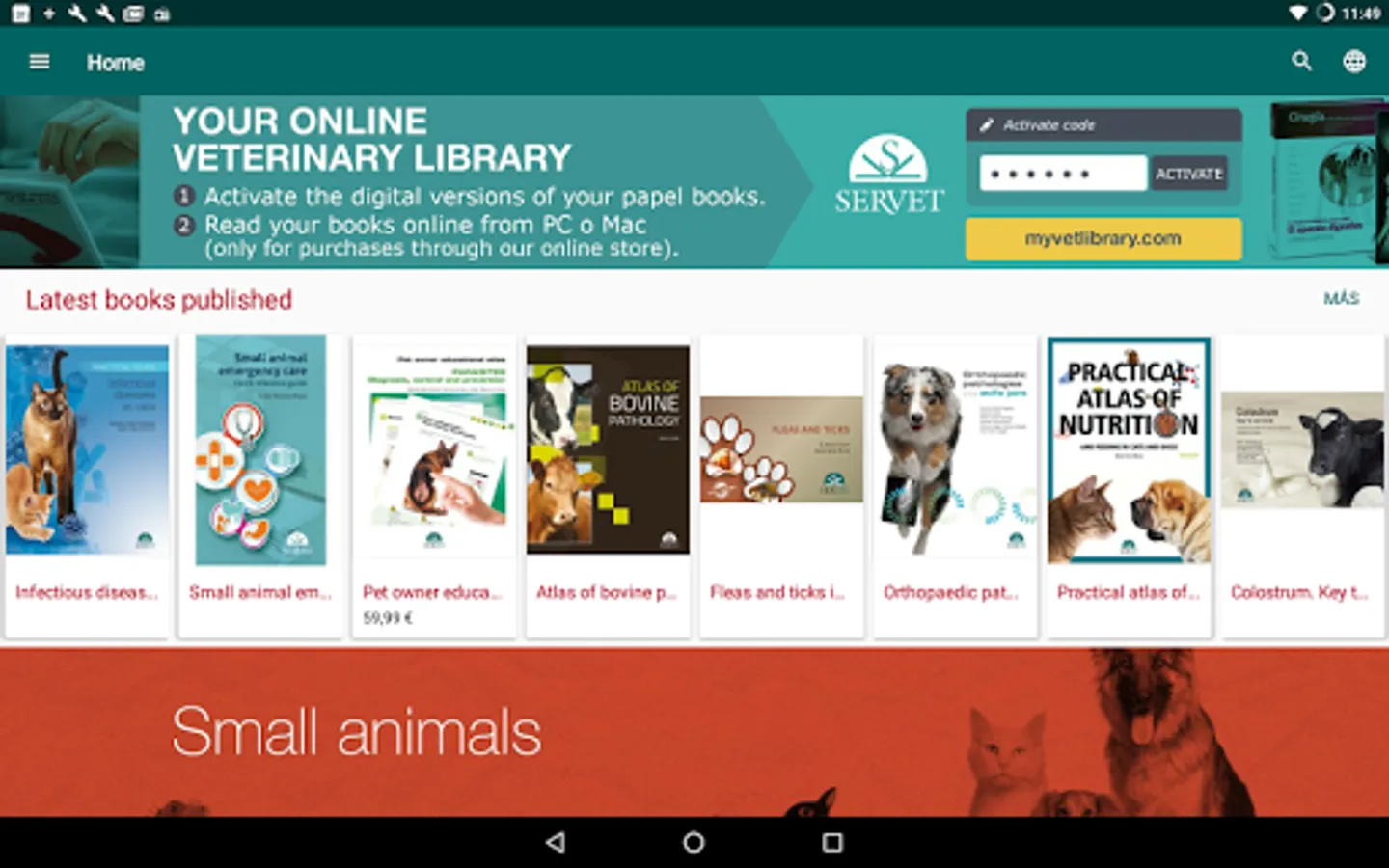 This is the digital kiosk of Editorial Servet, the publishing company for vets. You can now enjoy the best technical books for vets on your mobile devices, with a catalogue to which new books will progressively be added. Furthermore, through Servet digital you will be able to manage your online veterinary library (www.myvetlibrary.com) and activate the e-books you buy or receive through companies in the veterinary sector.