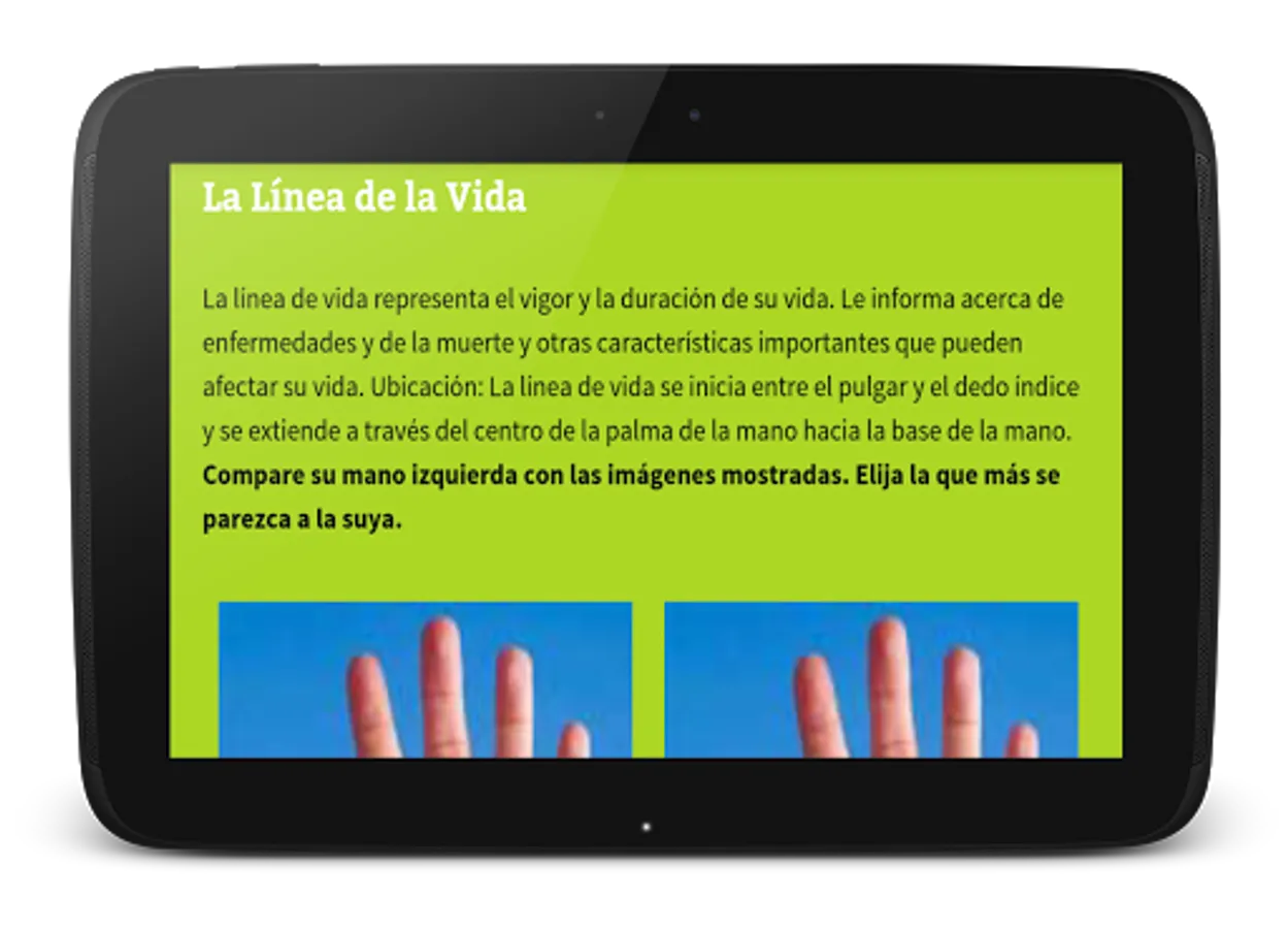 Its use is very simple; you only have to look at your left hand and go marking images that best match your line of life, health, head etc ..