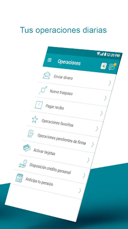 - Sign all your operations with FirmaMóvil, our advanced signature system, and forget about passwords by SMS or coordinate cards.