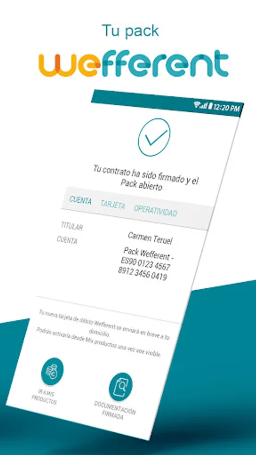 - Your Wefferent pack at hand 24 hours a day, without queues, without waiting ... Manage your movements anywhere. Send money, how and when you want. Turn your cards off and on at will, modify their limits, change where and how you can use them in moments, without paperwork.