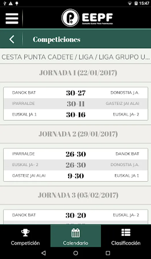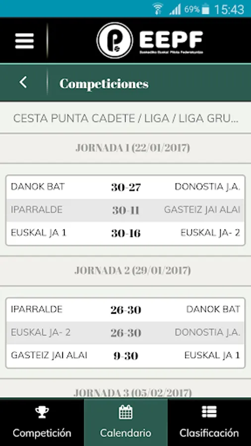Euskadiko Euskal Pilota Federakuntzaren ofiziala app.
