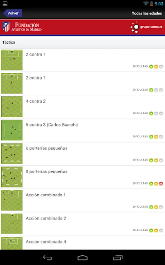 Exercises de Tecnificación Foundation Atlético de Madrid, application of consultation with more than 400 training exercises.