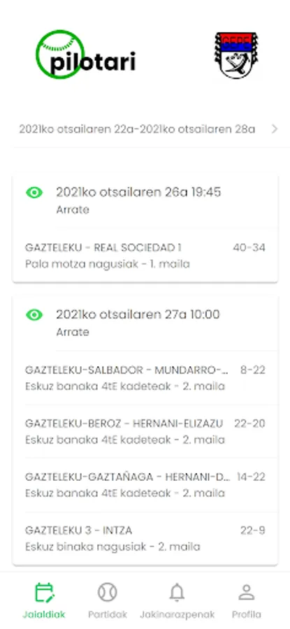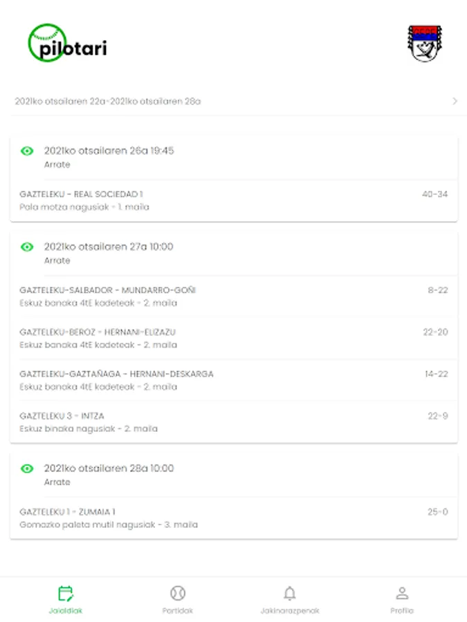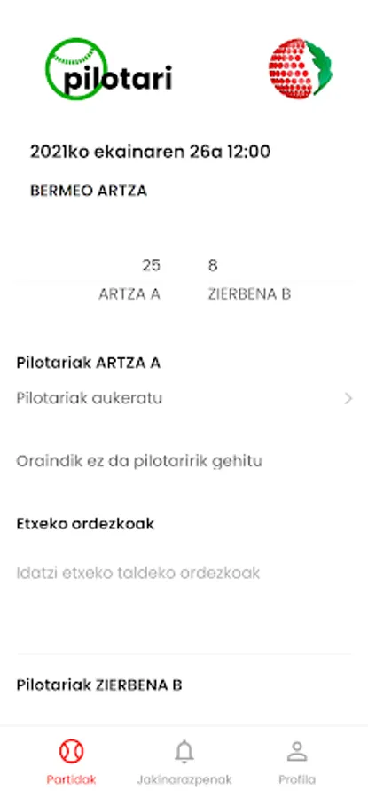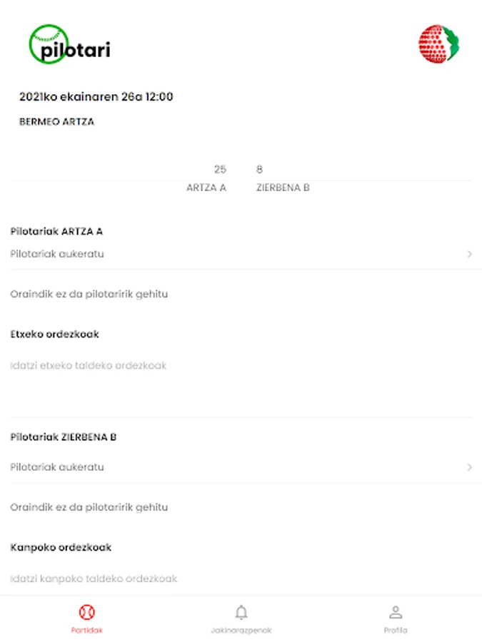 This application allows clubs and judges of the Basque Pelota Association of Alava, the Basque Pelota Federation of Bizkaia, the Basque Pelota Federation of Gipuzkoa and the Basque Pelota Federation of the Basque Country to carry out different operations.