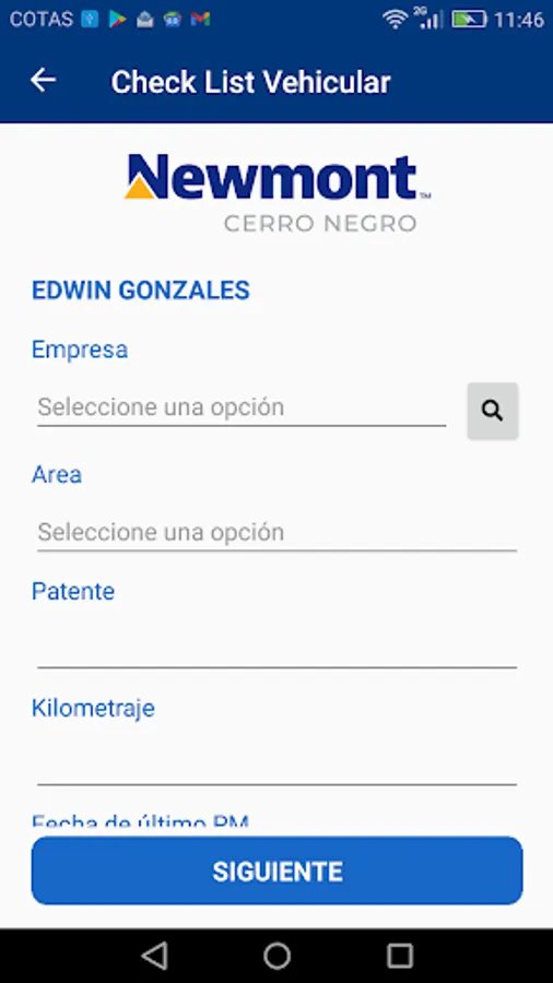 App for the Vehicle Check List of drivers authorized by Newmont.