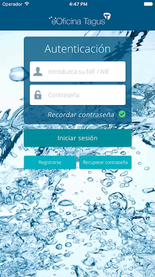 The username and password for this app are the same that you can use to access the Web application eOficina.