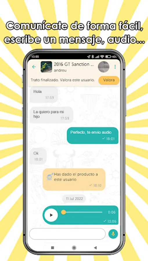 An environment where you can publish everything you don't use without asking for anything in return. When publishing a product, indicate its basic characteristics, such as weight, volume, and where to pick it up. If someone is interested, they can send you an audio or a message and if in the end you decide to give it to them, you can arrange the pick-up.