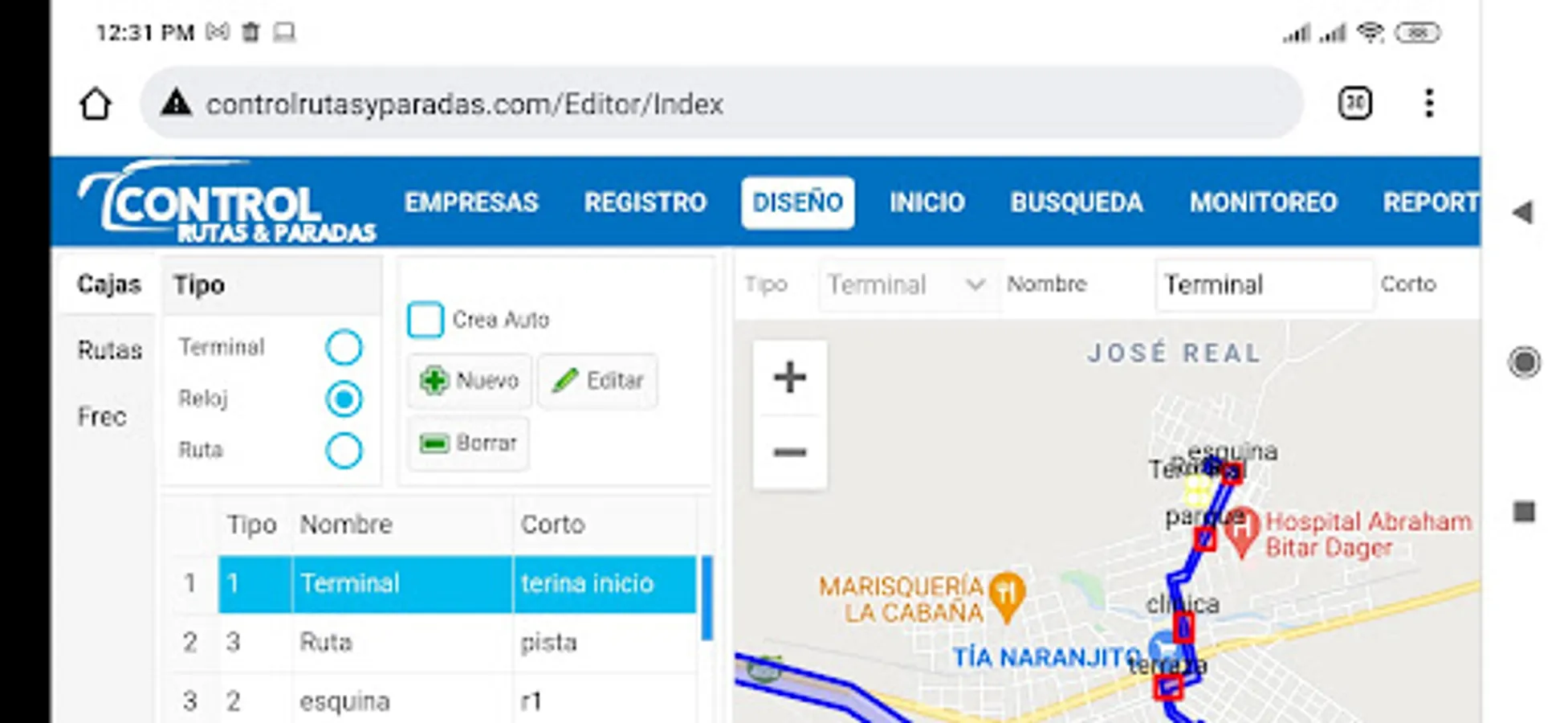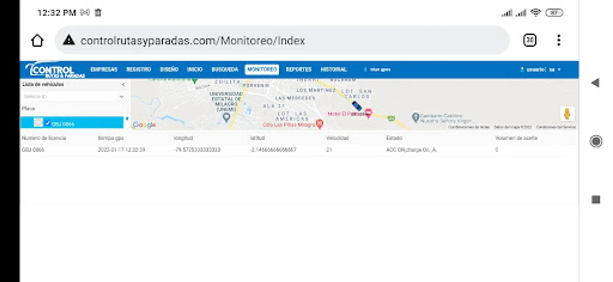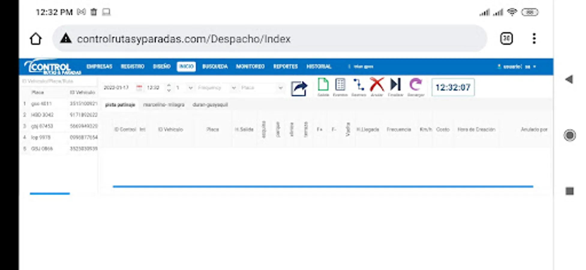 App for the efficient control of clock markings (stops) and route control for urban buses, with the main characteristics of unit tracking, control of daily turns, route abandonments, reporting of fines for late minutes for collection and income control, etc.