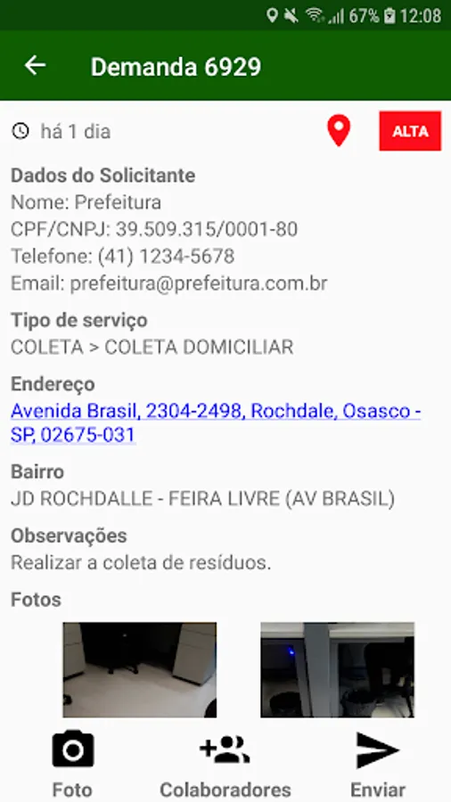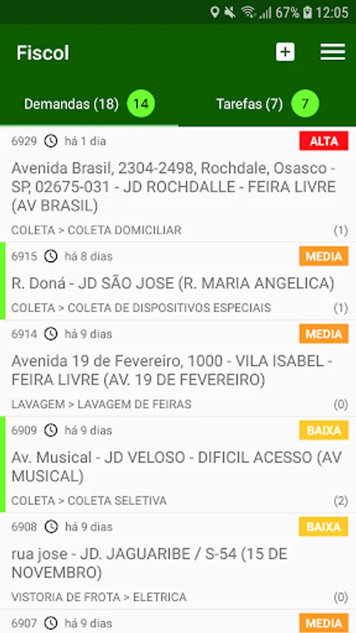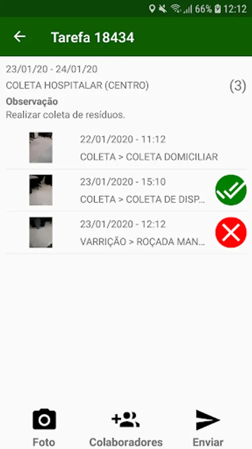 This application aims to record the cleaning activities of roads, land and other works carried out by waste collection companies, making it possible, through photos and activity notes, to monitor the fulfillment of what was planned.