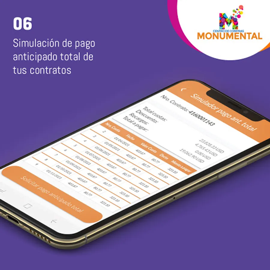 Monumental Shopping Center is an application from GRUPO EMPRESARIAL LAFUENTE that connects all your operations on your mobile device and puts control of your reservations and contracts in your hand.